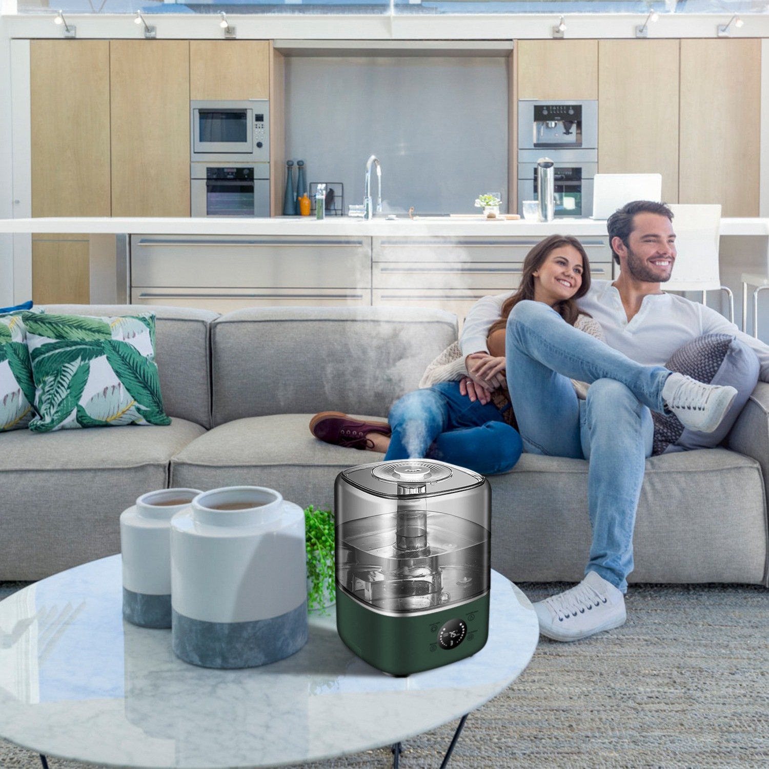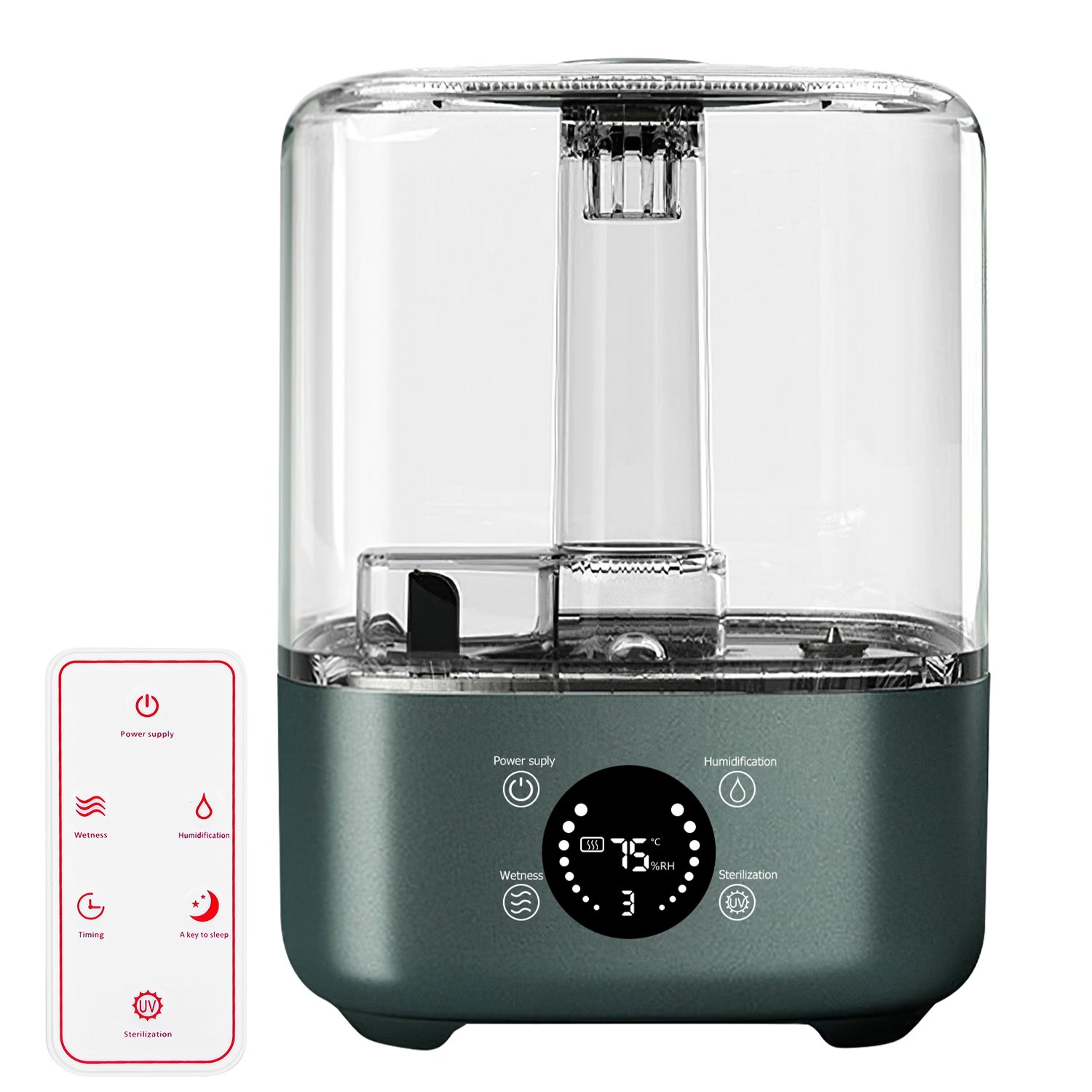 Bothered by coughing, sore throat, sinus issues, allergies, and dry skin problems and looking for solution? Our air humidifier with UV sterilize function is an affordable choice to relieve these issues. Adopt digital display screen and remote, you can conveniently adjust the level of mist volume to satisfy your different demands for various seasons. Low noise and large cover range are suitable for living room, bedroom, office. 5L/1.32Gal water tank provides you up to 20hours continuous use in minimum mist volume. Smart timer setting provide you a more comfortable and relaxing sleeping experience. Perfect companion for working, studying or sleeping.