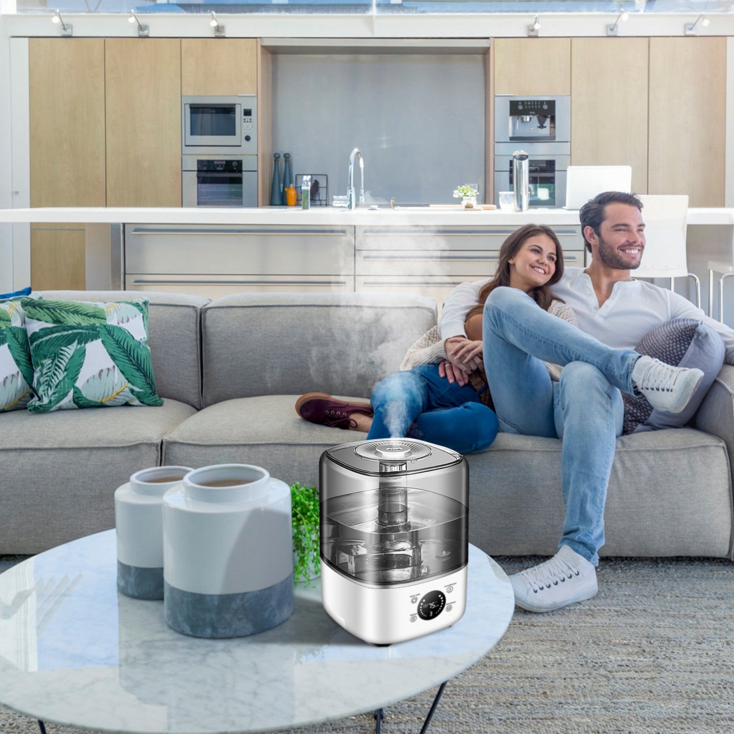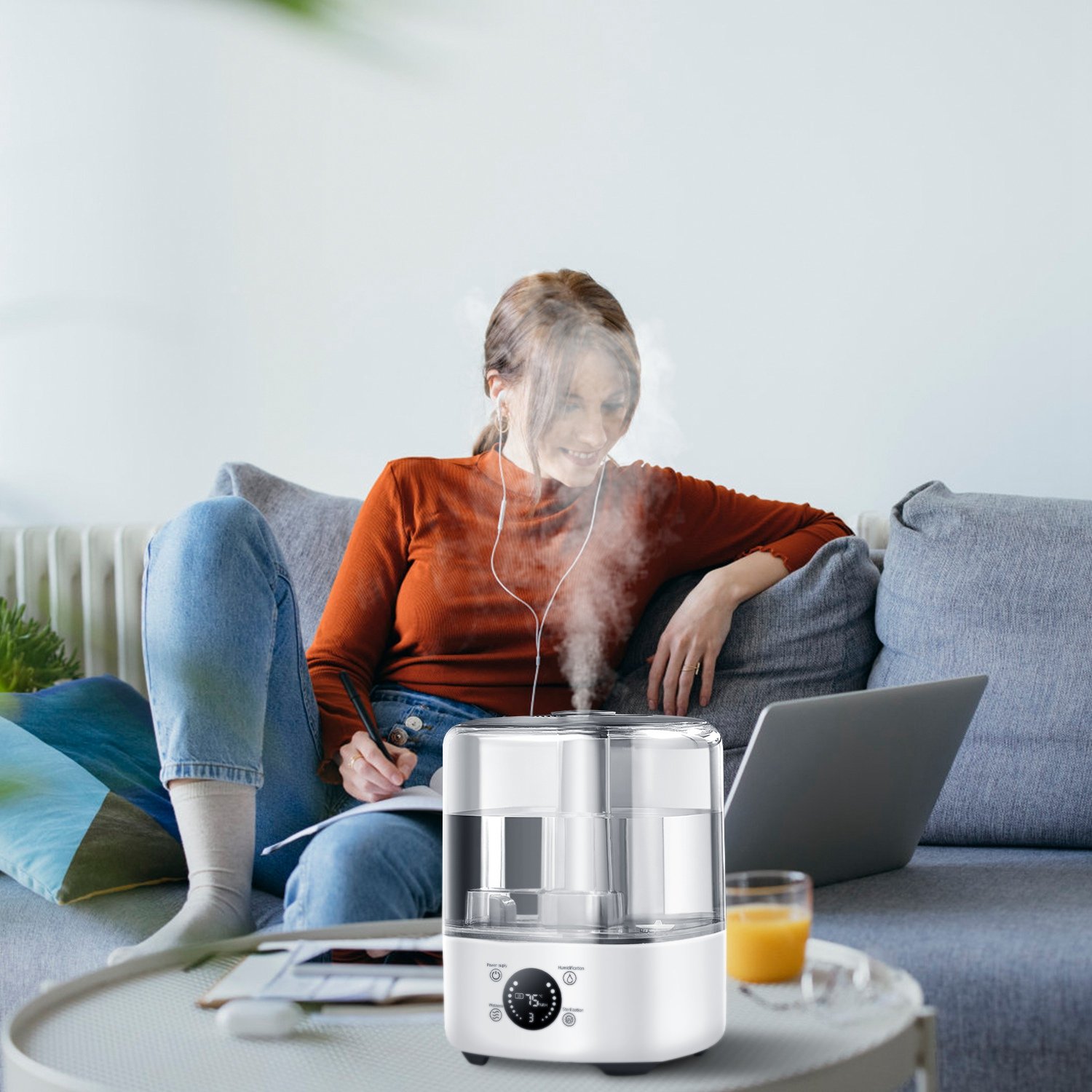Home > 5L/1.32Gal Ultrasonic Air Humidifier Electric Mist Humidifier with Temperature Humidity Sensor Timer Setting UV Light Adjustable Mist Level Quiet Esse